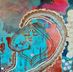 The rich interplay of turquoise, red, and gold in the background creates a dreamlike atmosphere, symbolic of the unseen yet ever-present movement of God’s love. The warm reds and earthy tones ground the figure, while the celestial blues and golds lift it beyond the material world. This reminds us that while we walk through the complexities of life, the presence of God is woven through it all.
